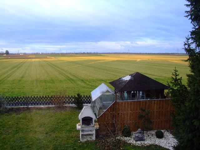 Blick auf Garten und Feld